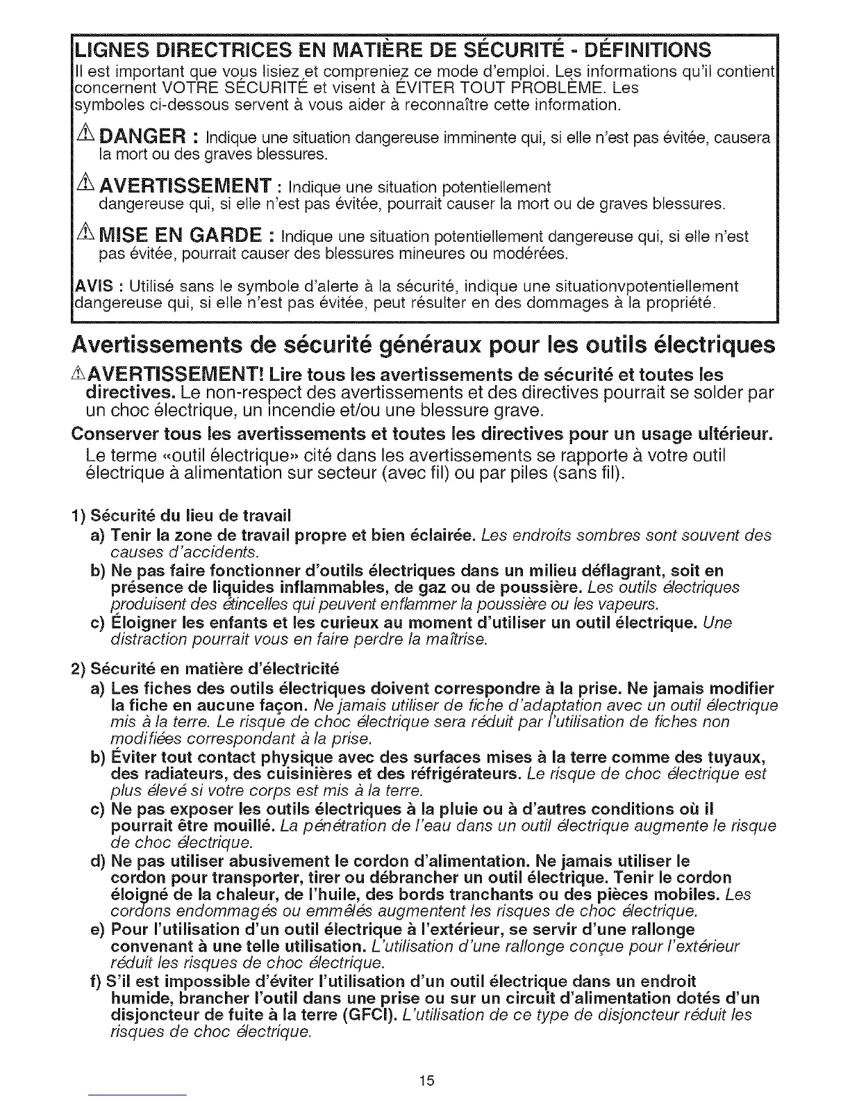 Avertissements de s curit g6n rau× pour les outils 61ectriques