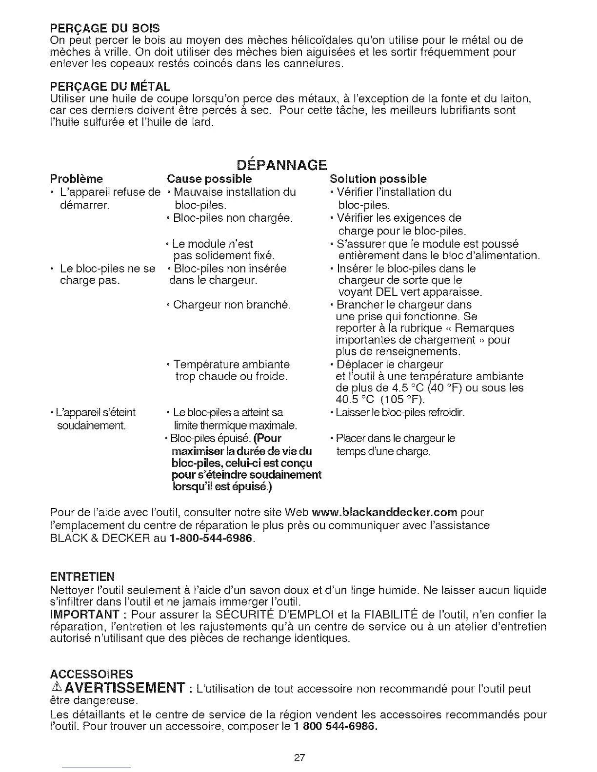 Pour de I'aide avec I'outil, consulter notre site Web www.blackanddecker.com pour