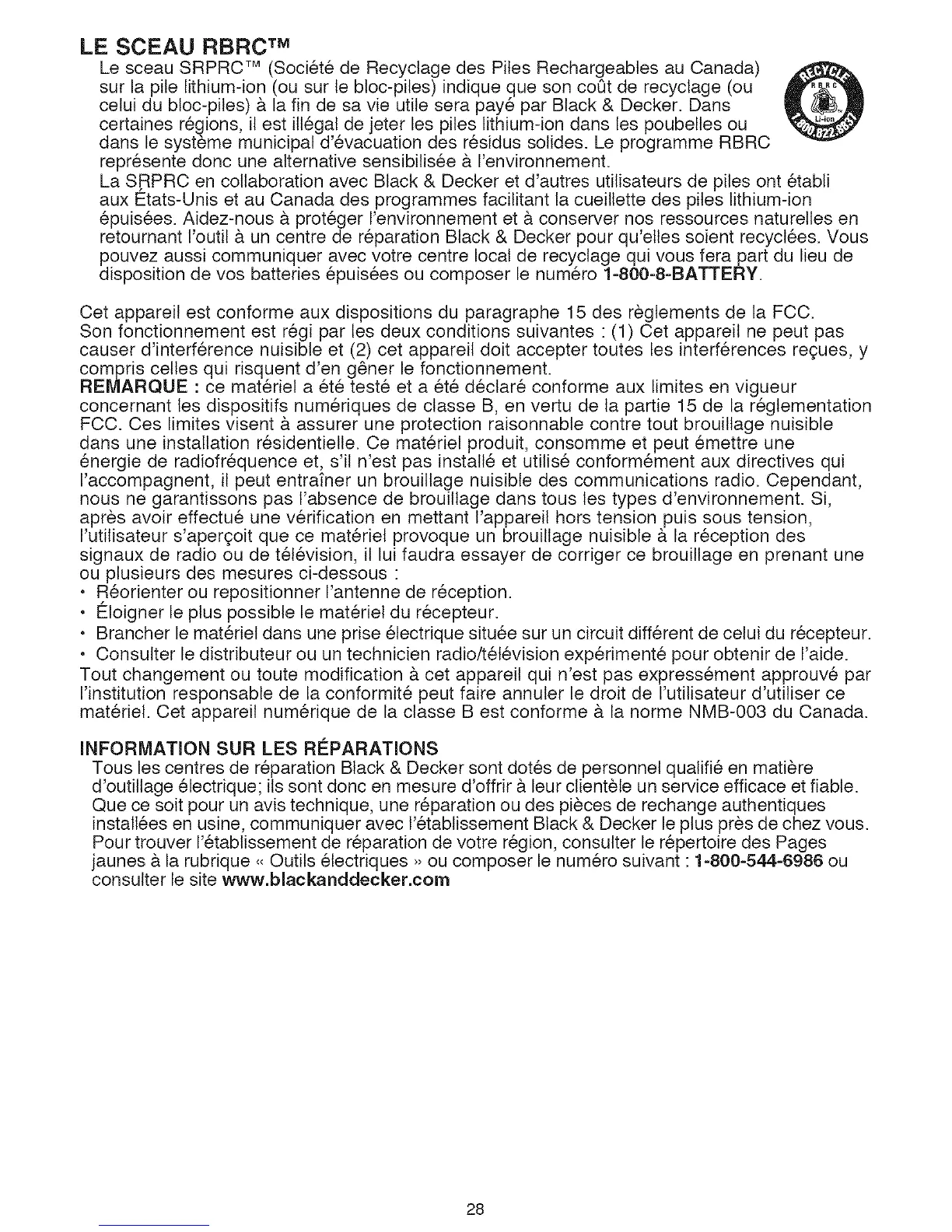 Tousles centres de r6paration Black & Decker sont dot6s de personnel qualifi6 en mati@e
