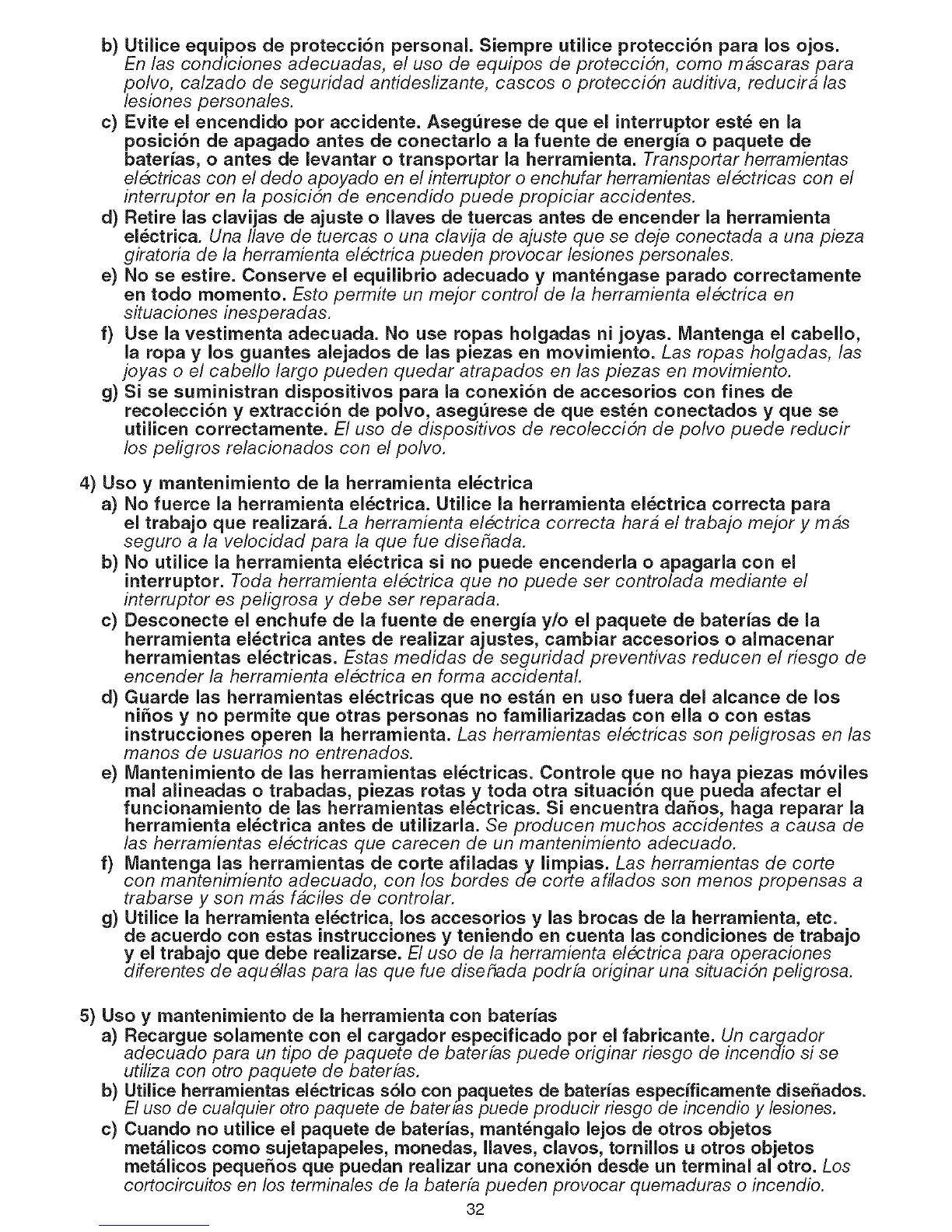 4) Uso y rnantenirniento de la herrarnienta el6ctrica