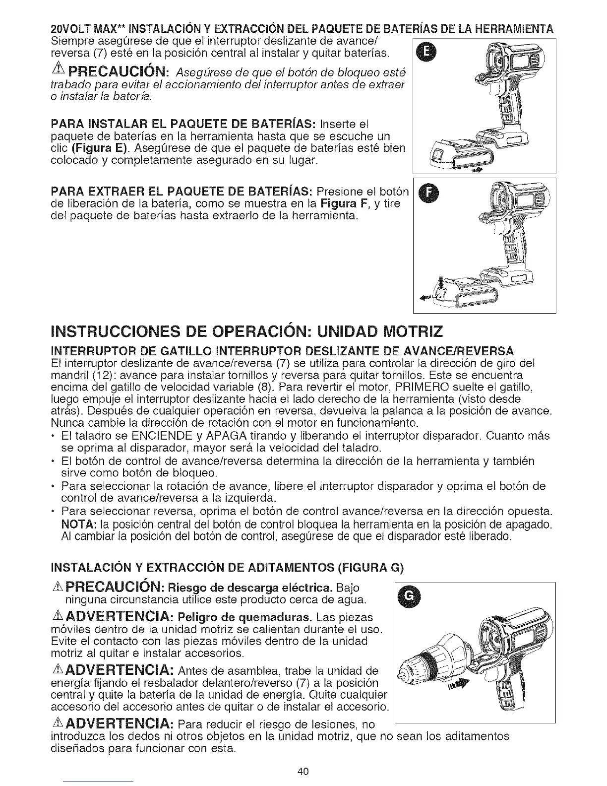 clic (Figura E). Aseg0rese de que el paquete de baterfas est6 bien