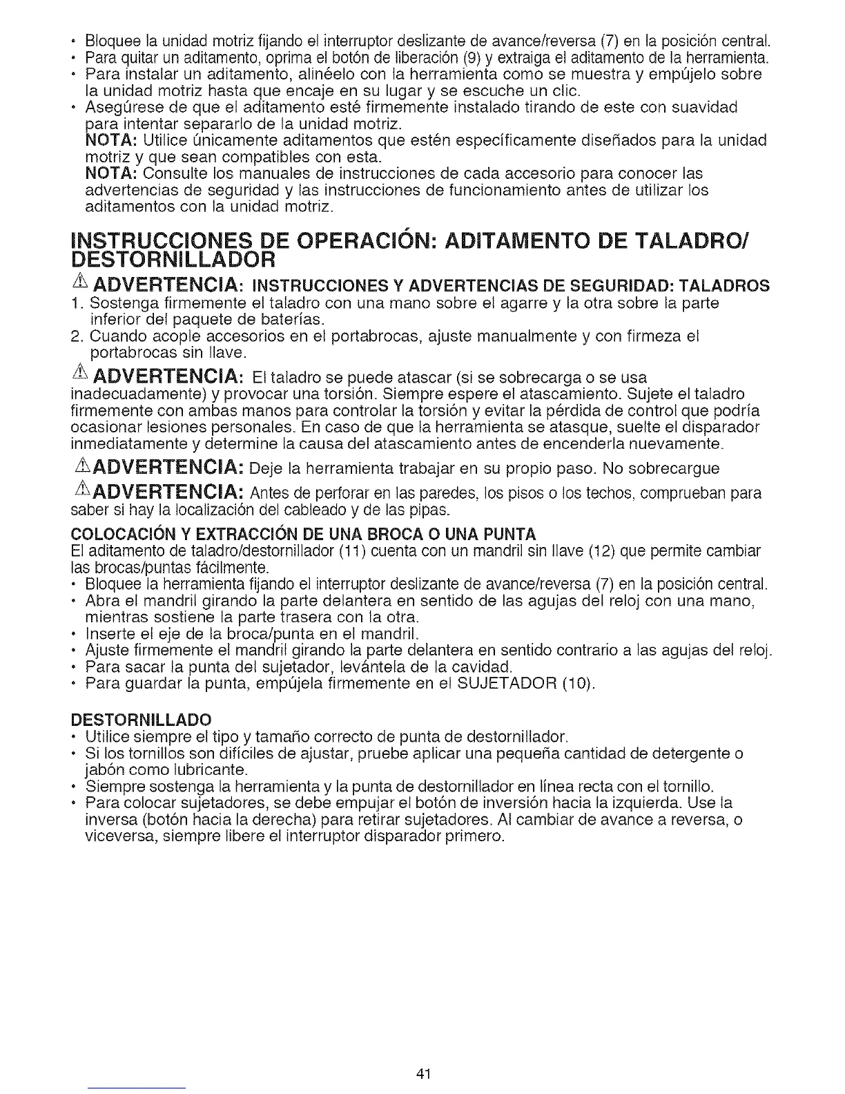 ADVERTENCIA: INSTRUCCIONES Y ADVERTENCIAS DE SEGURIDAD: TALADROS