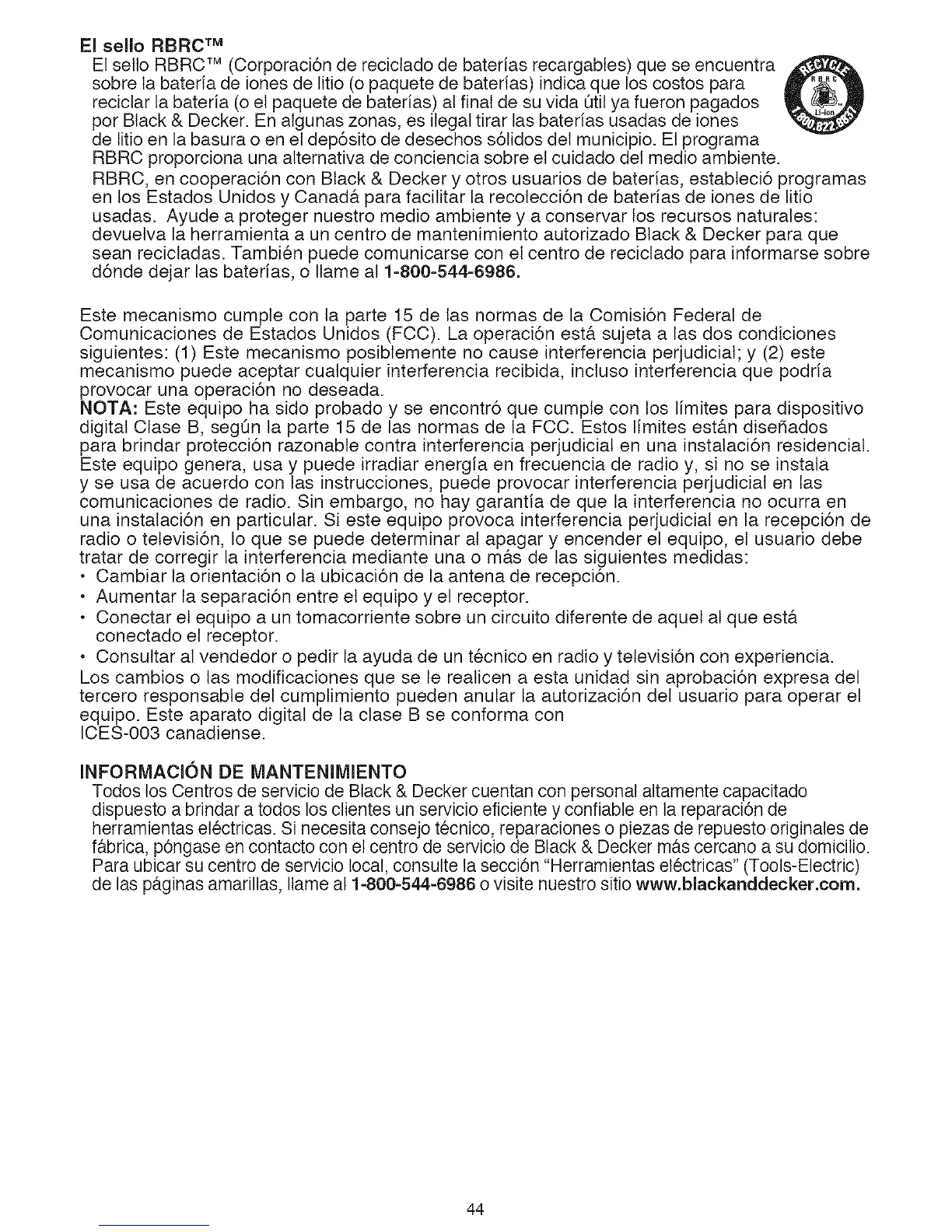 por Black & Decker. En atgunas zonas, es ilegal tirar las baterias usadas de iones
