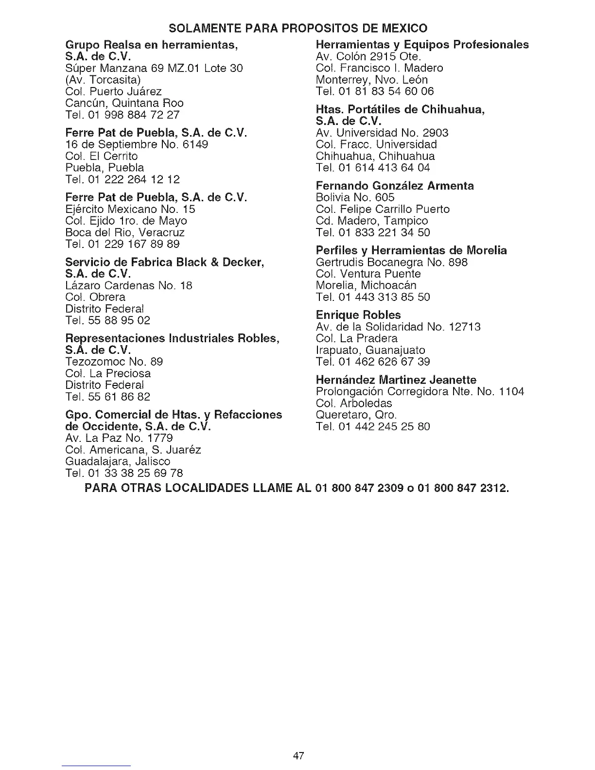 PARA OTRAS LOCALIDADES LLAIVIE AL 01 800 847 2309 o 01 800 847 2312.