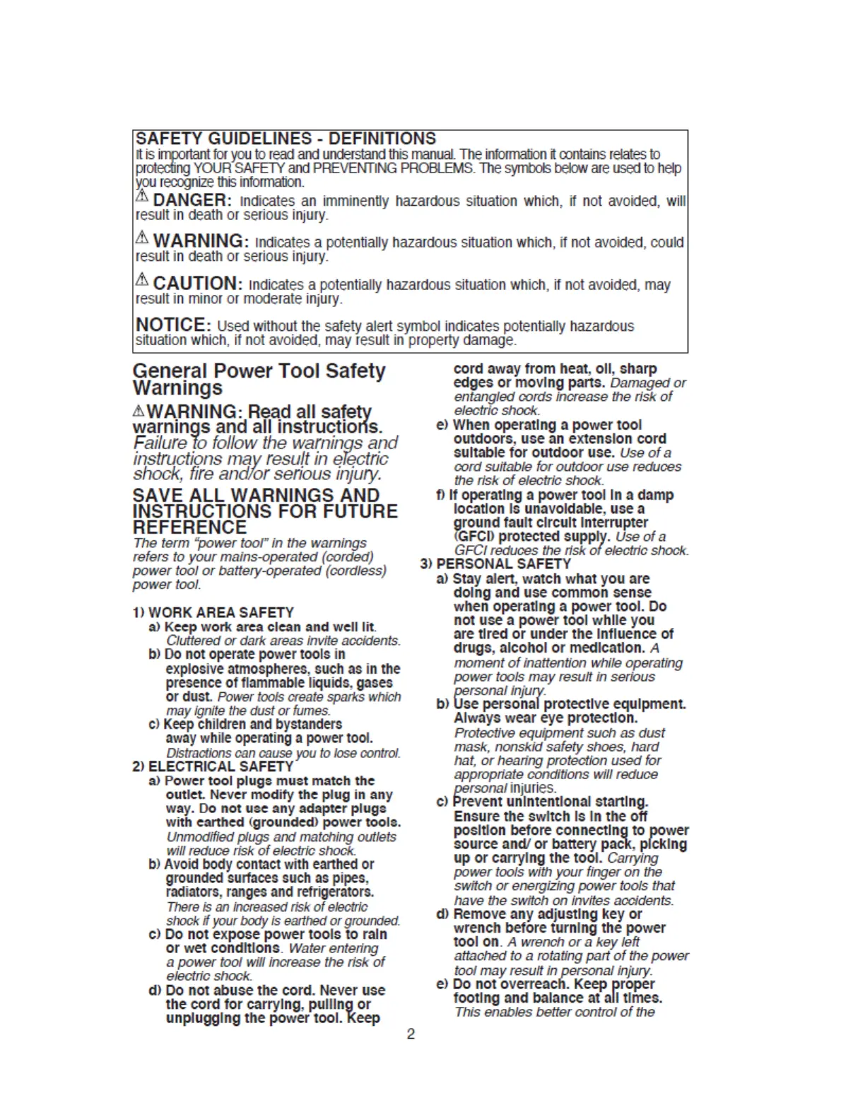 Black & Decker BDCJS20B - Safety Guidelines and Definitions; General Power Tool Safety Warnings