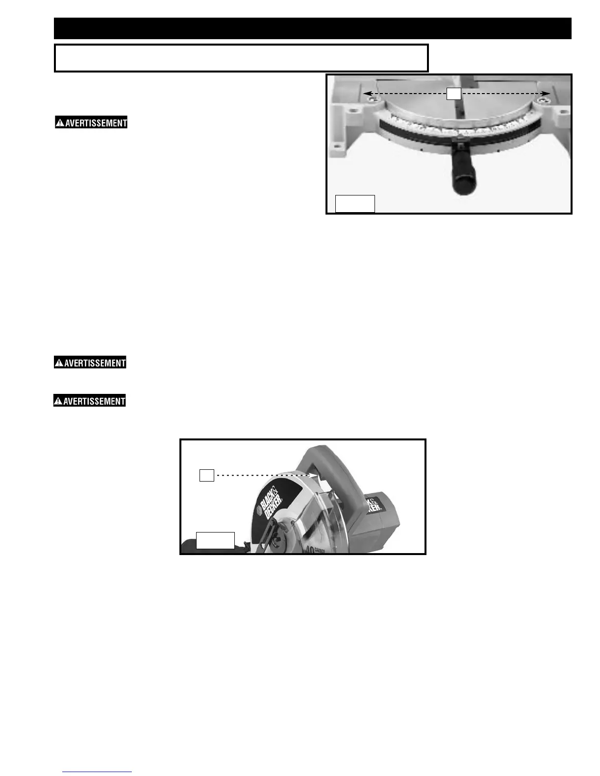 Une lame de scie en train de tourner peut présenter un danger. Une fois la coupe terminée, relâcher la