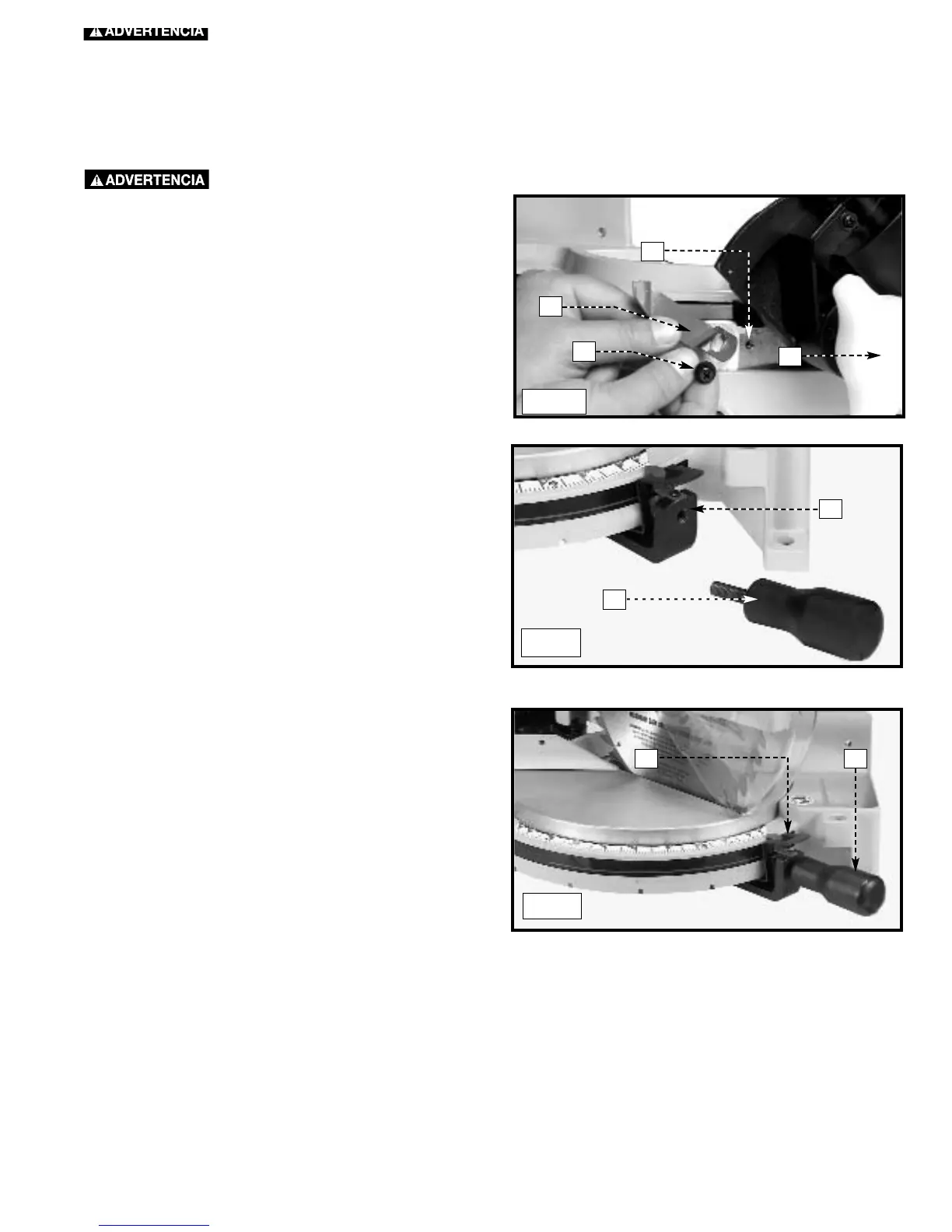 indicador de bisel (C). Enrosque el tornillo en el orificio (D)