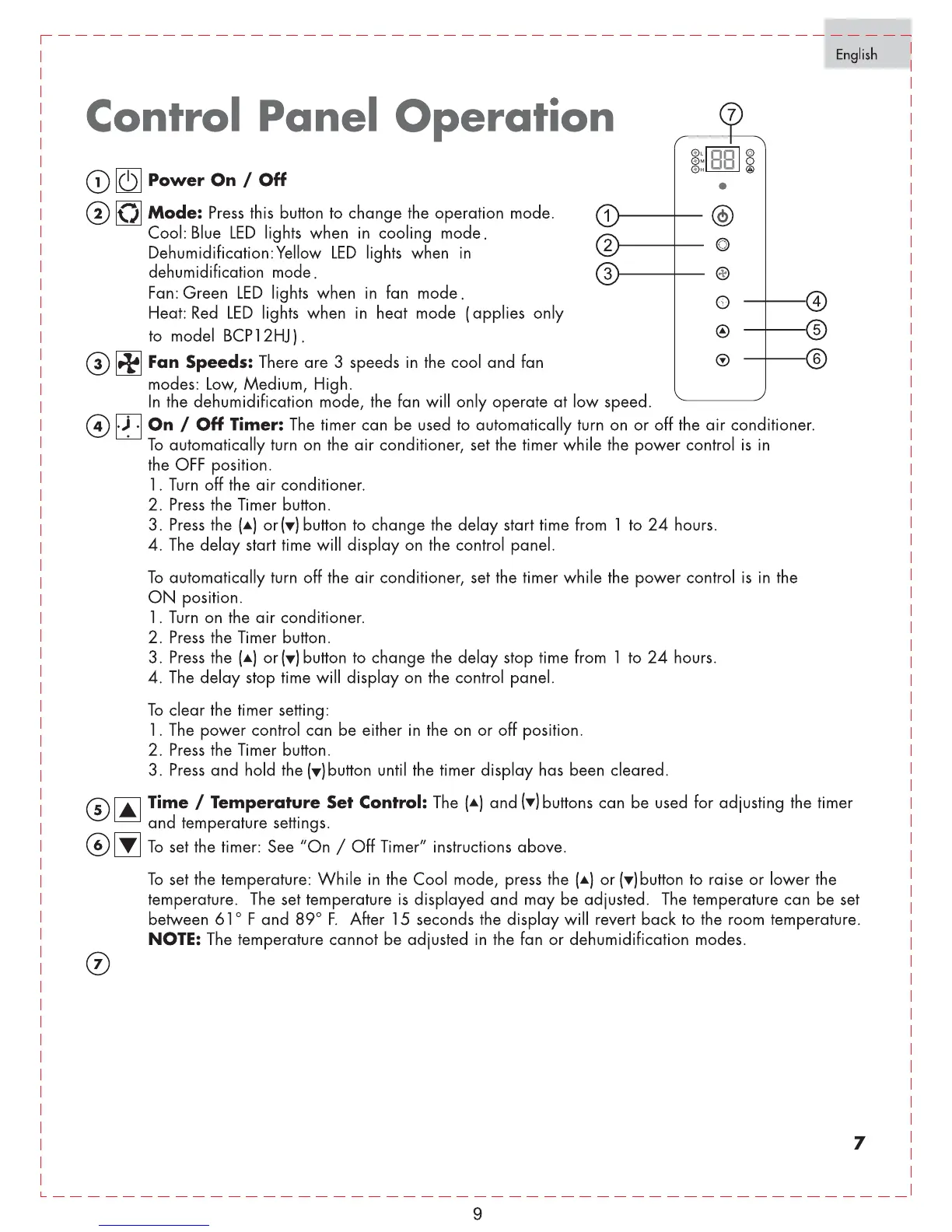 Black & Decker BPC08CJ - Control Panel Operation; Power On;Off and Mode Selection; Timer Setting and Clearing; Temperature and Time Setting