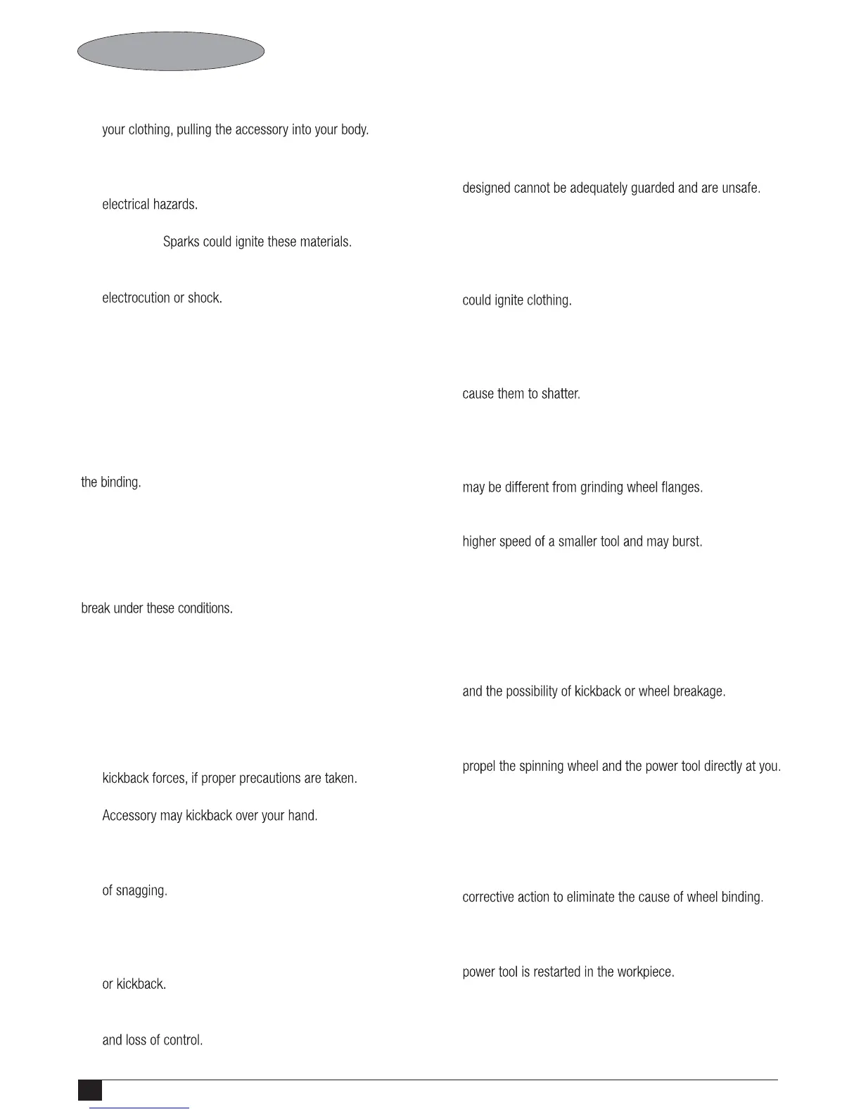 wheel, backing pad, brush or any other accessory. Pinching or