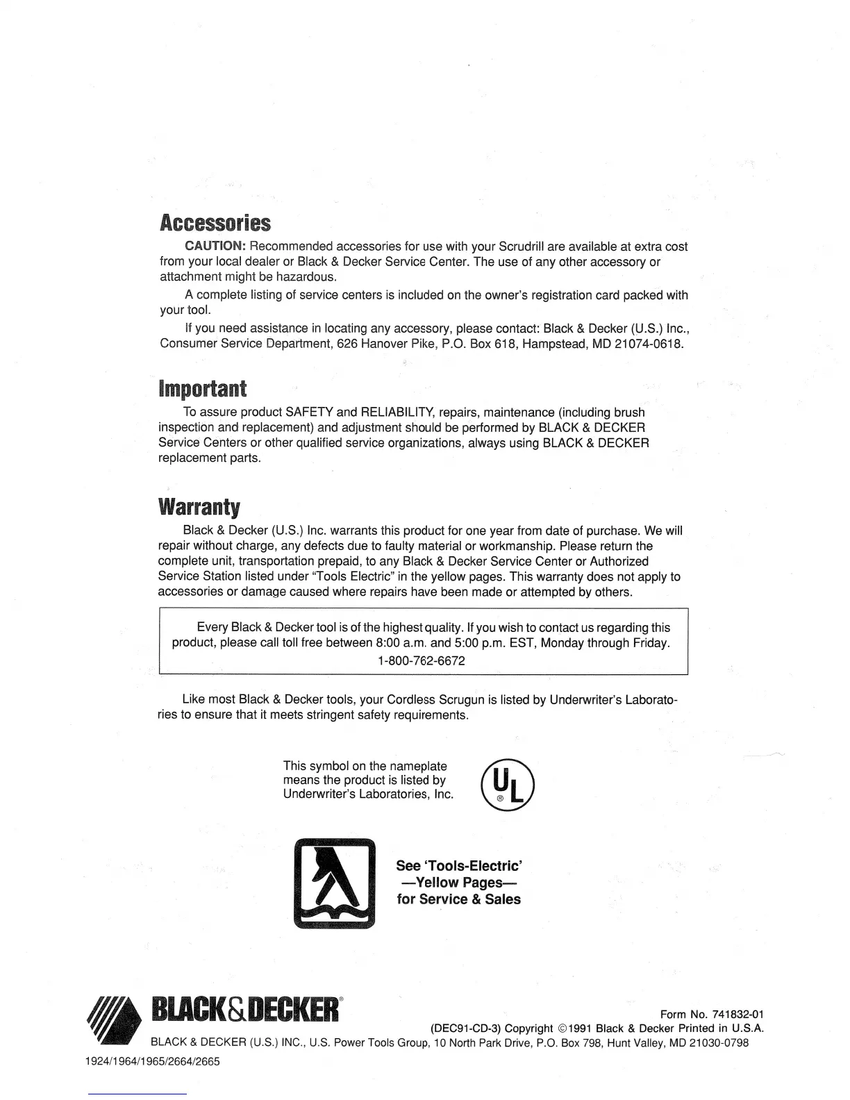 Black & Decker Cyclone - Accessories and Support; Recommended Accessories and Support; Important Service and Warranty Information; Authorized Repairs and Warranty Coverage