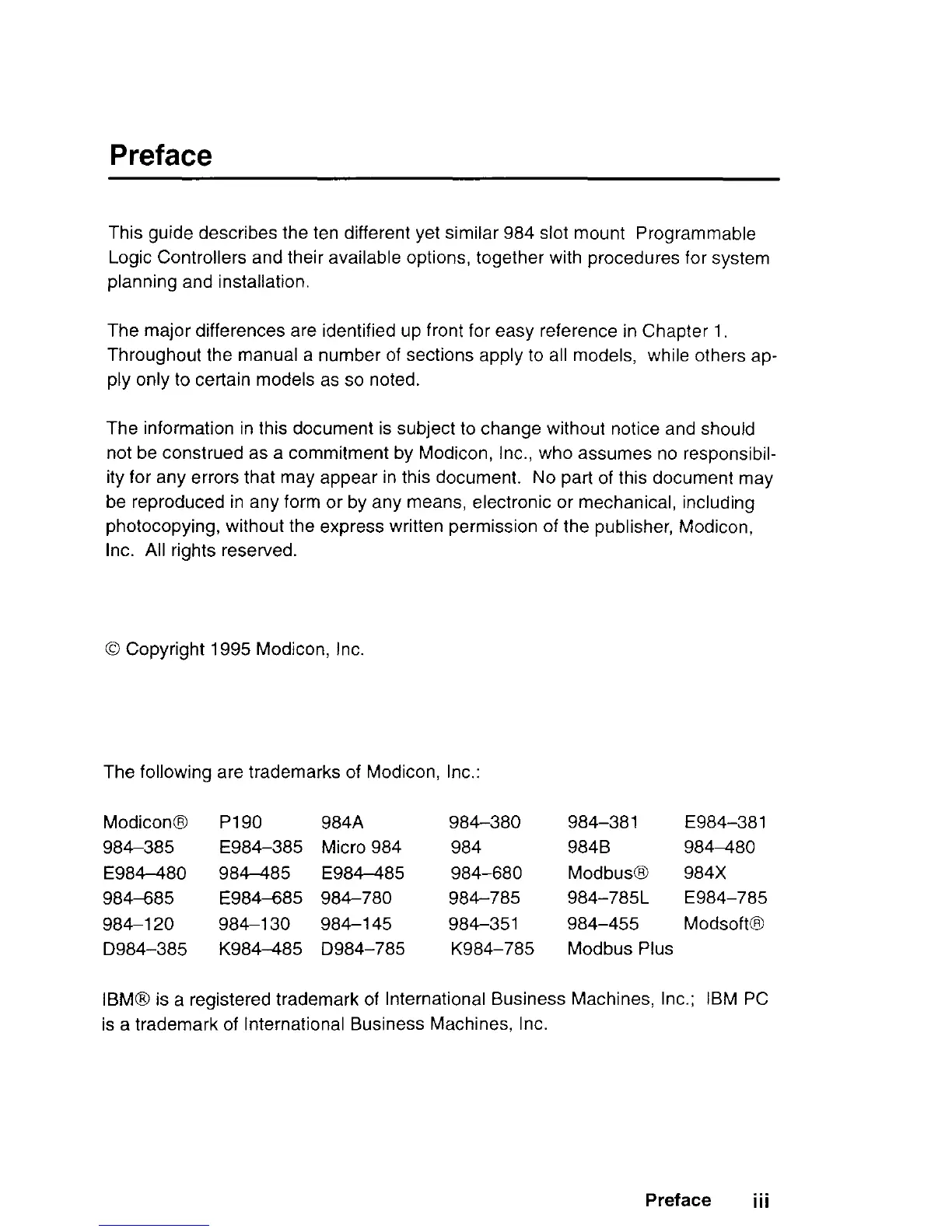 not be construed as a commitment by Modicon, Inc., who assumes no responsibil-