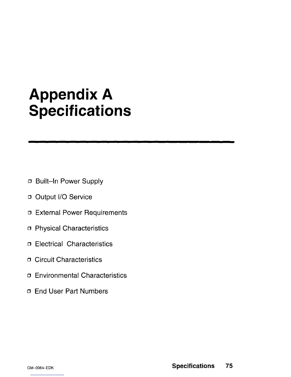 Specifications 75