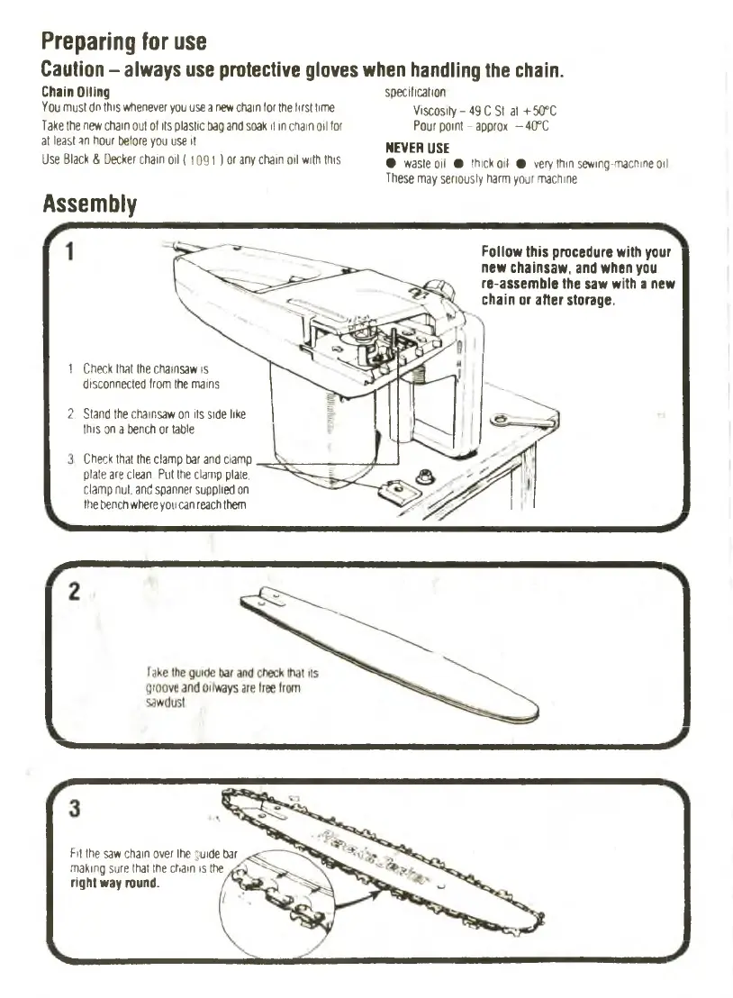 Take the new chain out of its plastic bag and soak it in chain oil for Pour point - approx - 40°C