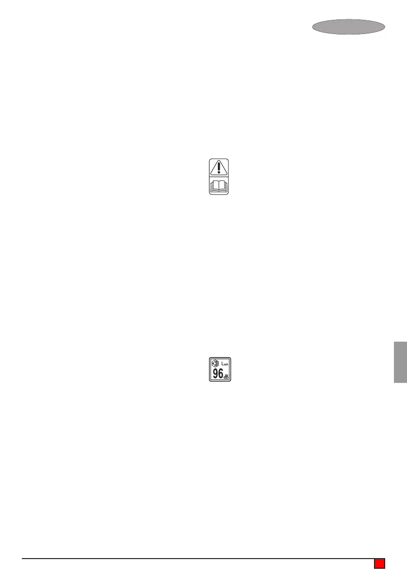 Redskapet är märkt med följande varningssymboler: