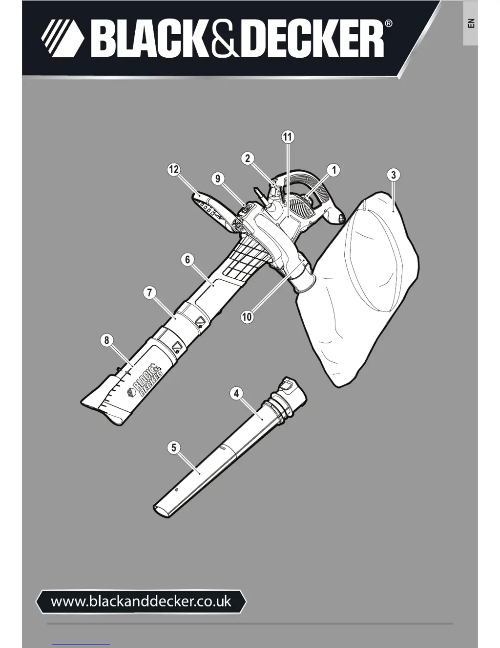 If your Black & Decker Blower isn't operating, start by checking the connection to the power supply. Then, inspect the fuse in the plug and replace it if it's blown (UK only). Also, ensure the blow/vacuum tube assembly is correctly fitted to the powerhead. If the fuse continues to blow, disconnect from the mains and consult a Black & Decker repair agent.