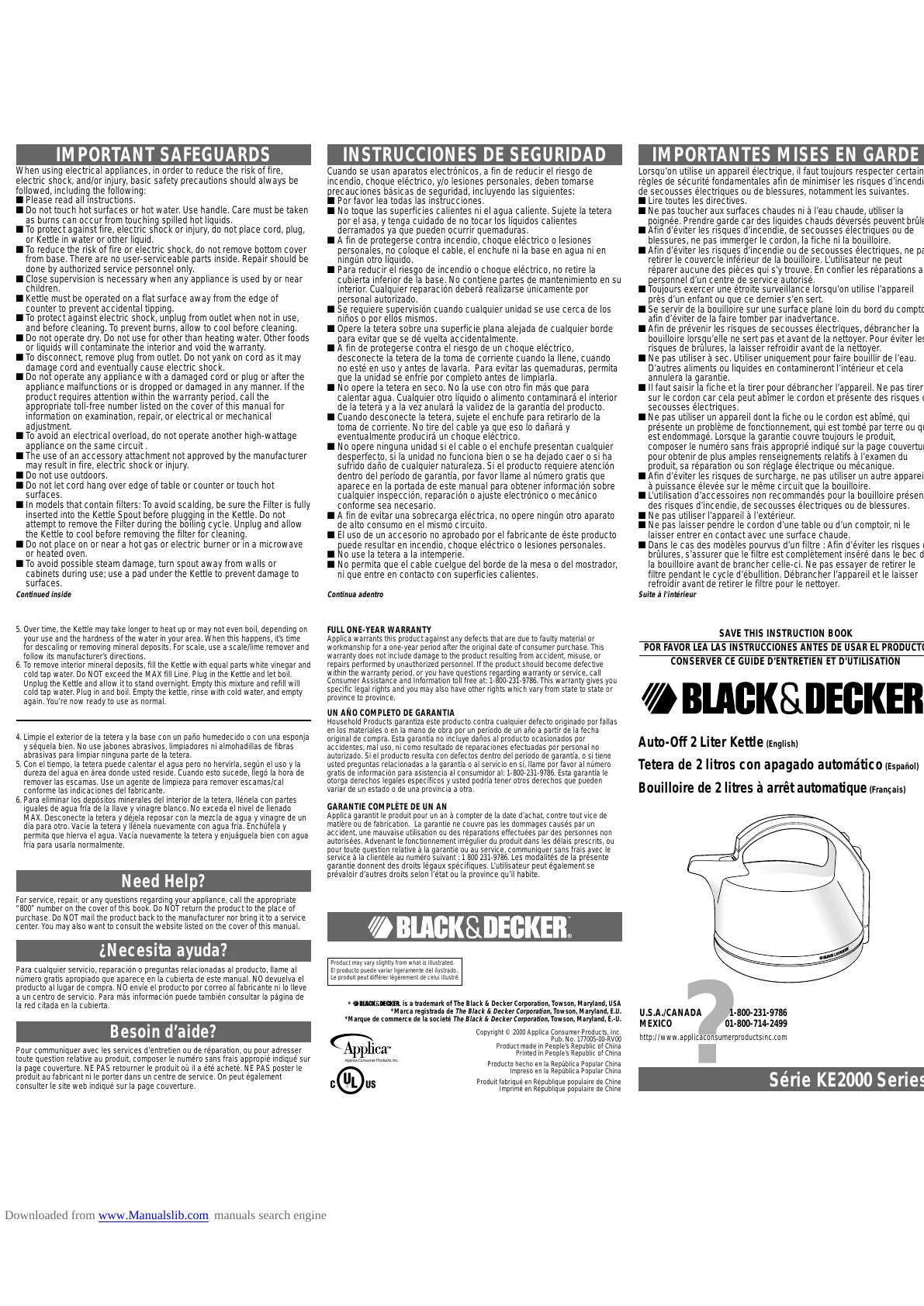 inserted into the Kettle Spout before plugging in the Kettle. Do not