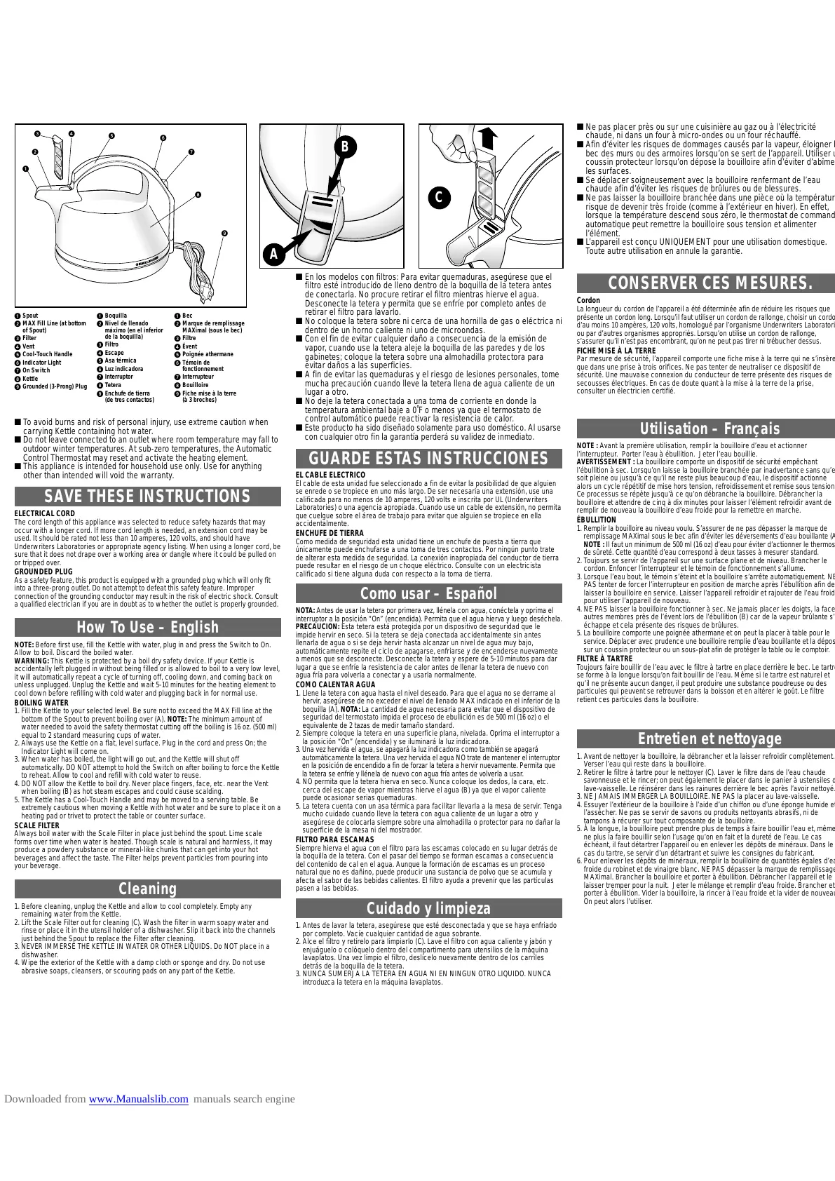 PRECAUCION: Esta tetera está protegida por un dispositivo de seguridad que le