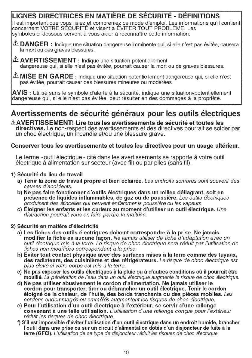 zkAVERTISSEMENT! Lire tousles avertissements de s6curit_ et toutes les