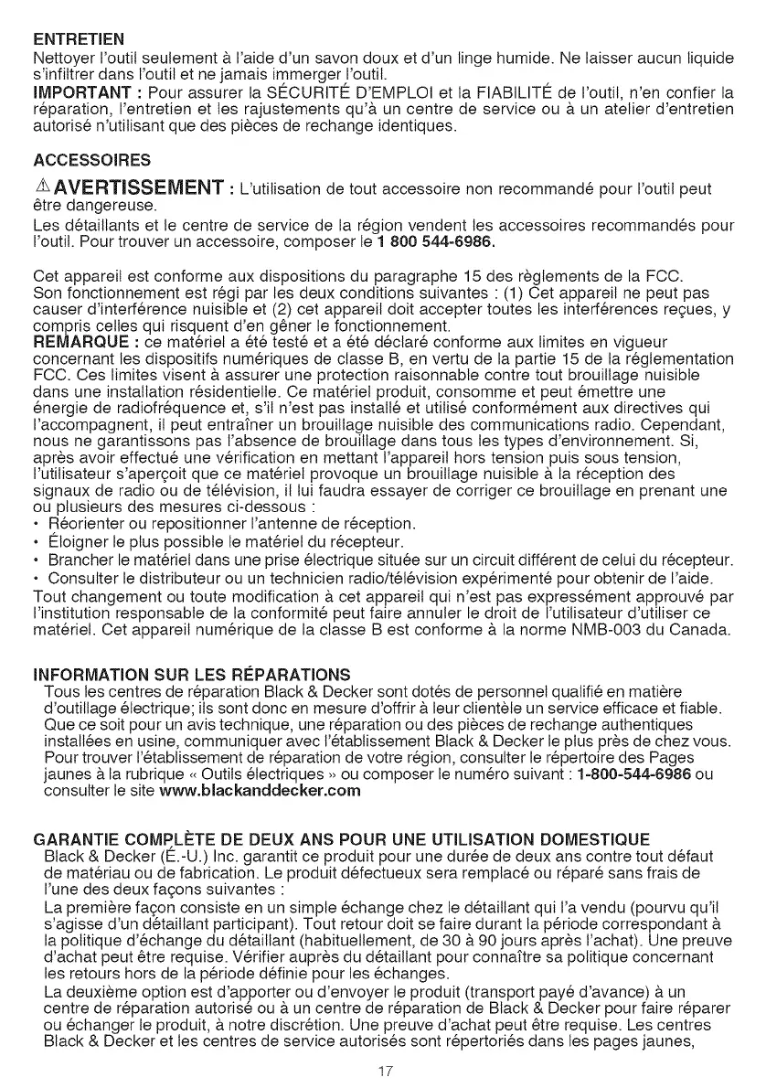 Tousles centres de r6paration Black & Decker sont dot6s de personnel qualifi6 en matiere