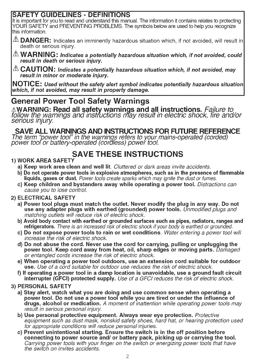 SAVE ALL WARNINGS AND INSTRUCTIONS FOR FUTURE REFERENCE