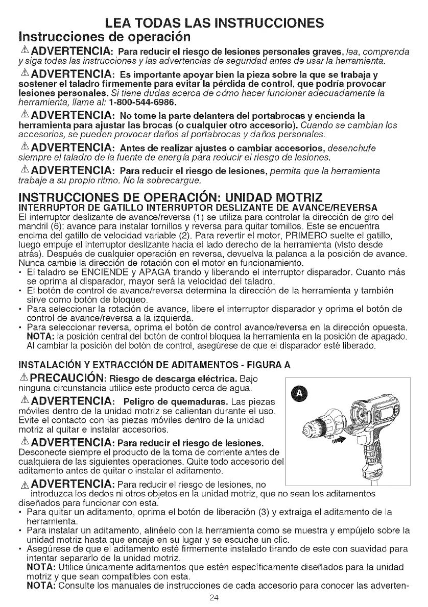 INSTALACION Y EXTRACCION DE ADITAMENTOS = FIGURA A