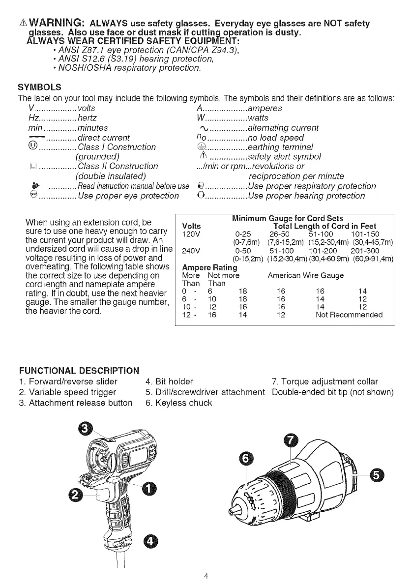 5. Drill/screwdriver attachment Double-ended bit tip (not shown)
