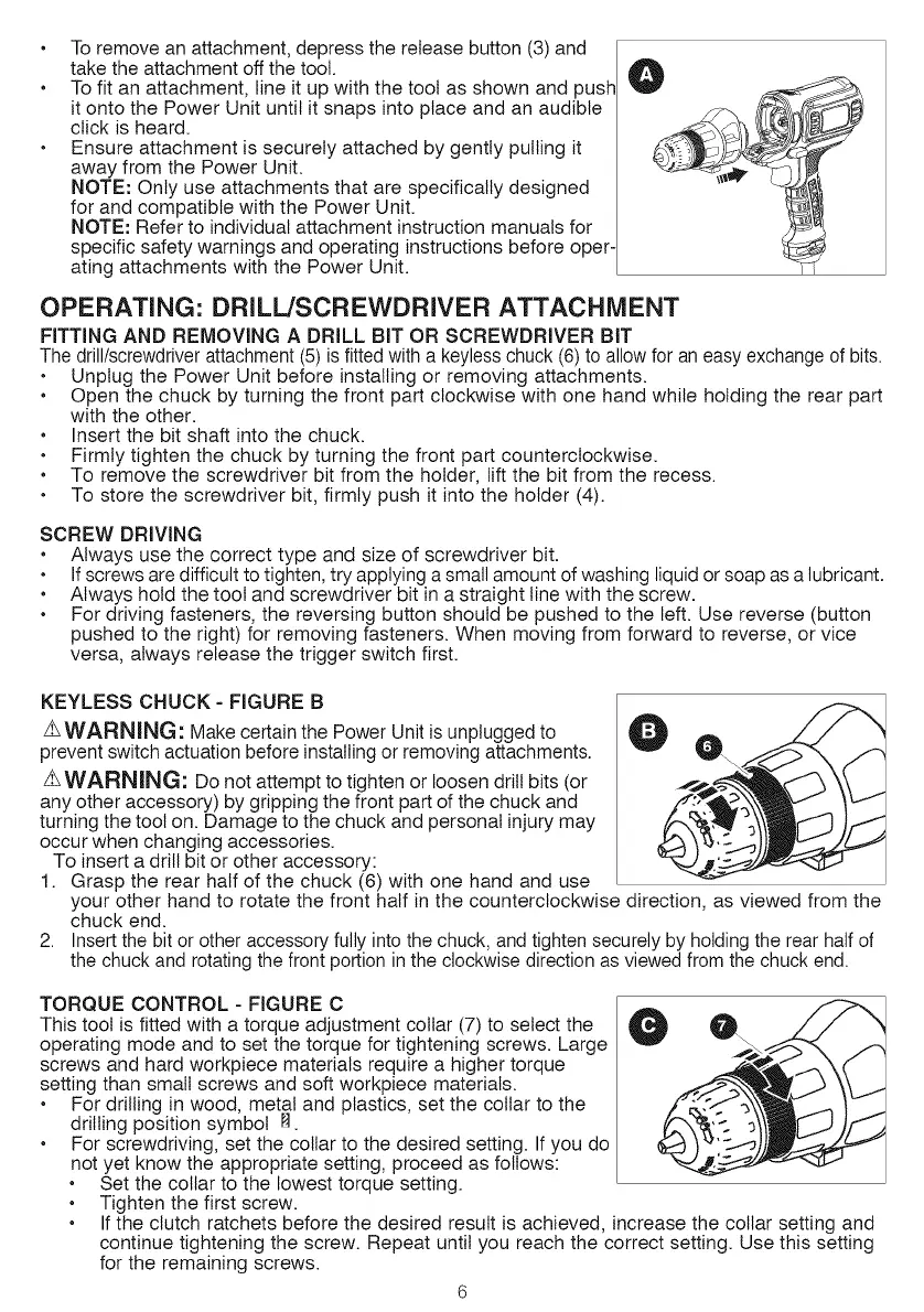 OPERATING: DRILL/SCREWDRIVER ATTACHMENT