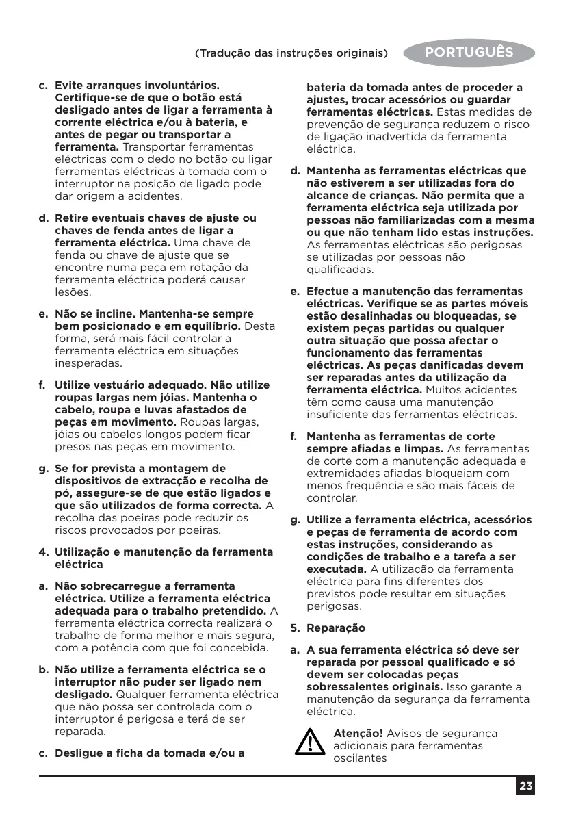 g. Utilize a ferramenta eléctrica, acessórios