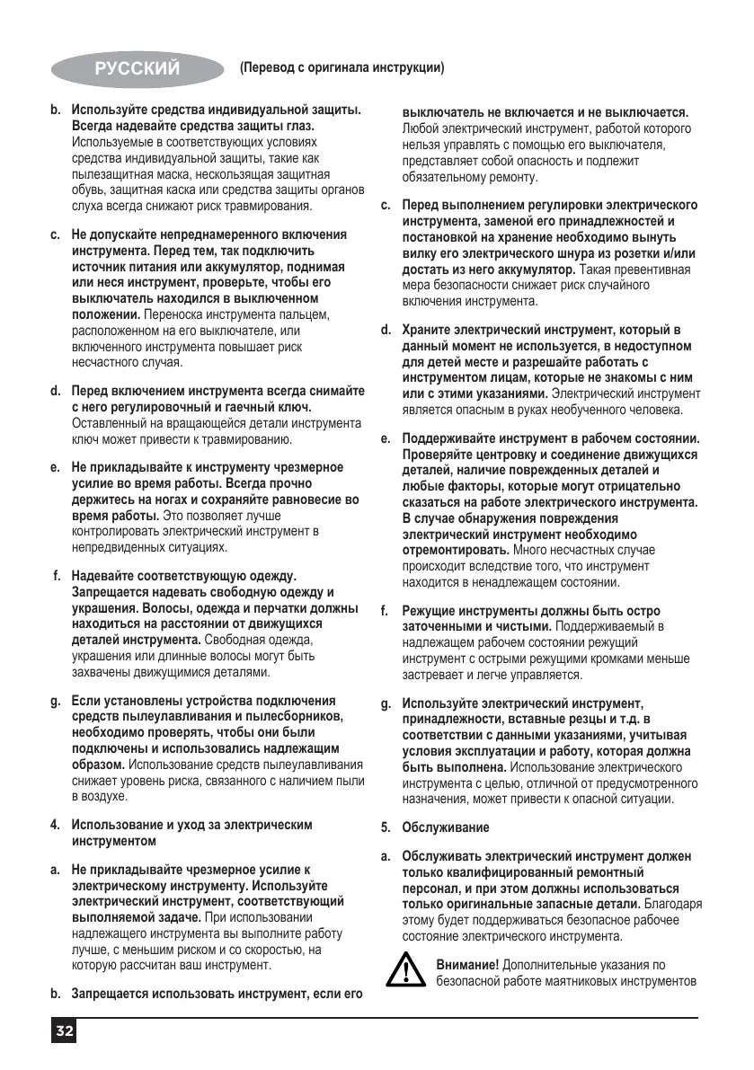 безопасной работе маятниковых инструментов