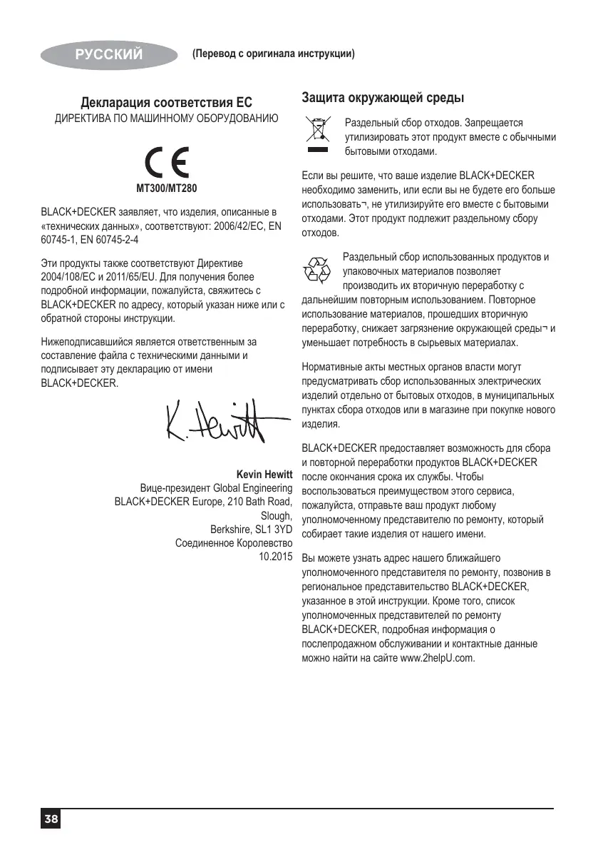 и повторной переработки продуктов BLACK+DECKER