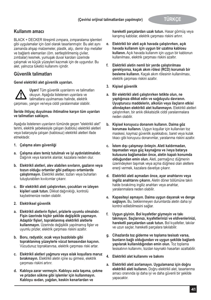 (Çevirisi orijinal talimatlardan yapılmıştır)