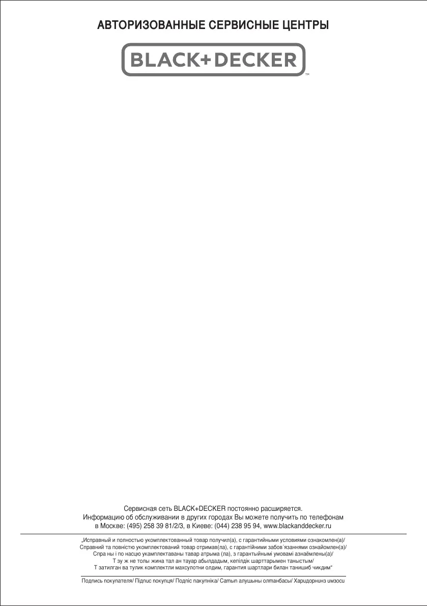 в Москве: (495) 258 39 81/2/3, в Киеве: (044) 238 95 94, www.blackanddecker.ru