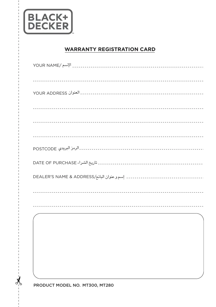 Black & Decker MT280 - Warranty Registration Card