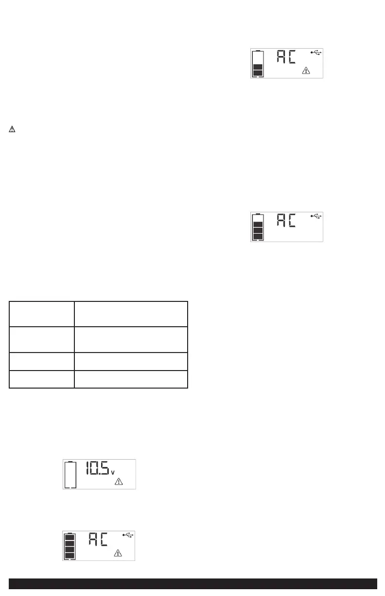 voltage protection will activate. The empty Battery Status Icon will flash for