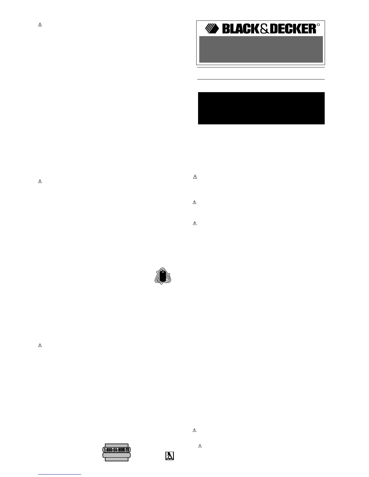 Black & Decker service center or to your local retailer for recycling. You may also contact your local