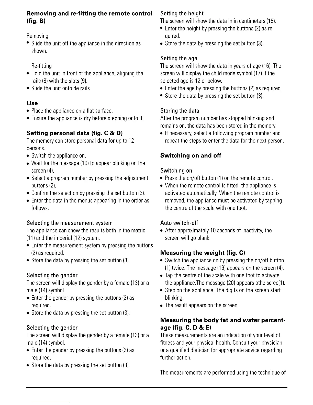 Black & Decker Scale - Removing and Re-fitting the Remote Control; Use; Setting Personal Data; Selecting the Measurement System