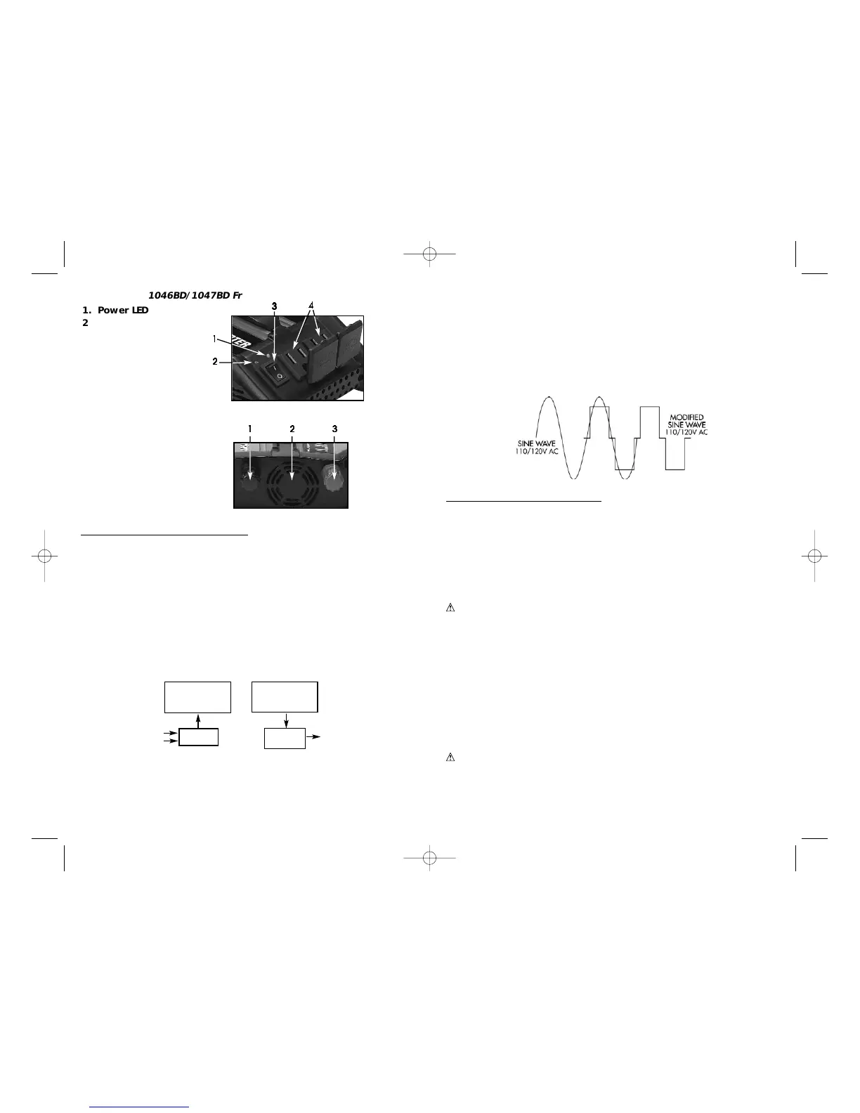 The AC output waveform of the Power Inverter is known as “modified sine wave.” It