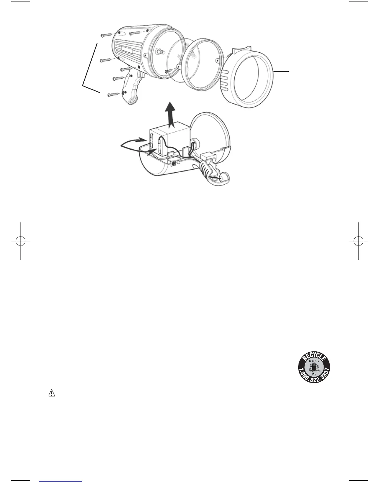 8. Position battery in housing and reassemble spotlight. Tighten all screws.
