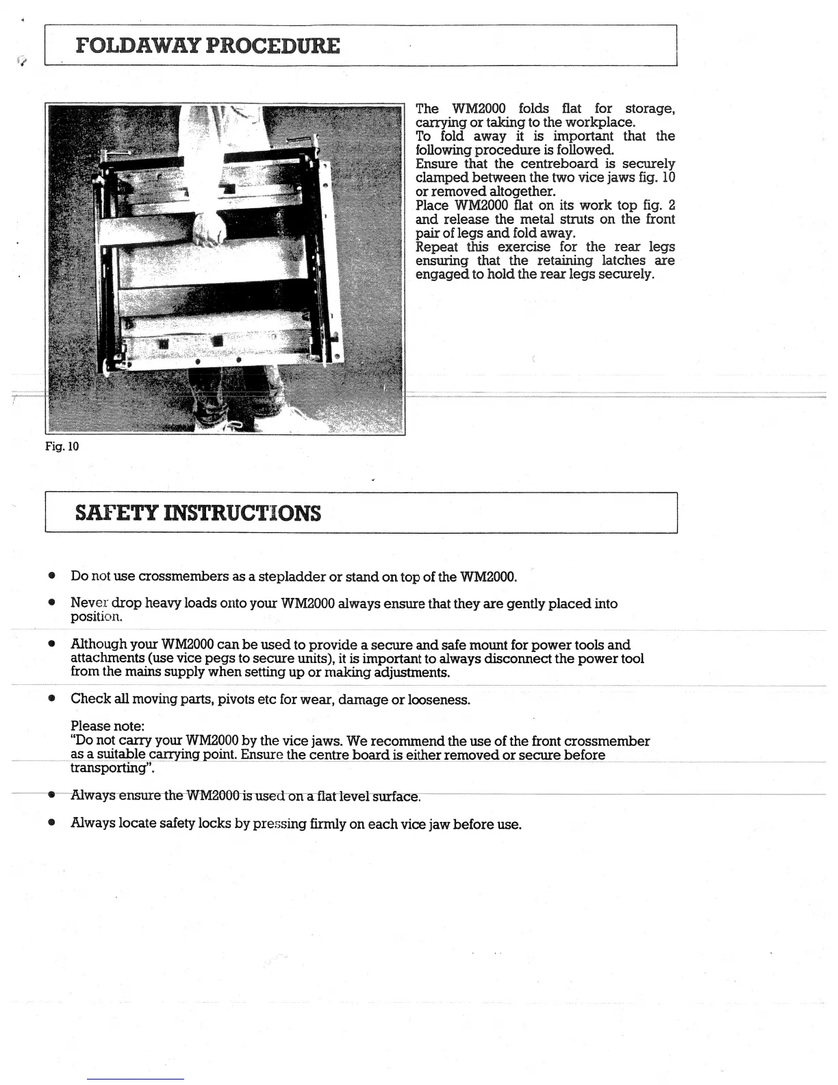 Black & Decker WM2000 - Folding and Assembly; Foldaway Procedure; Safety Instructions
