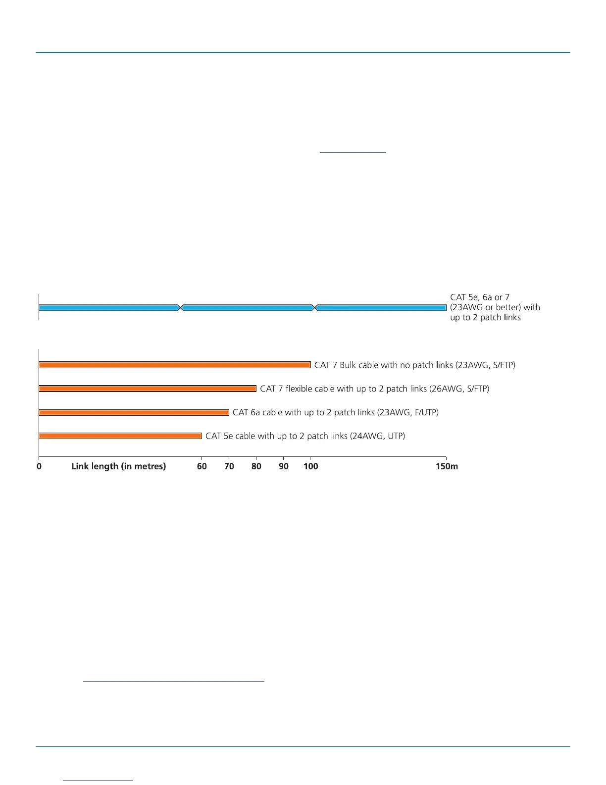 For best results, patch cables should be of type CAT 7a and be less than 2 meters in length. If patch cables are greater than 2