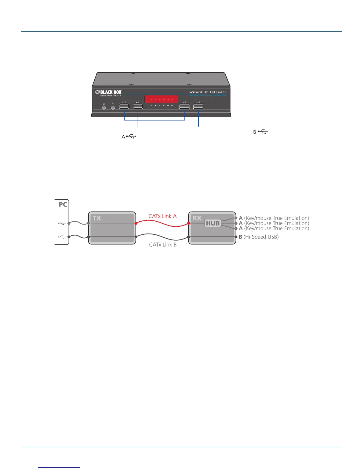 Note: Low/full speed USB devices can be used on port B; the transfer speed will be automatically reduced to support them.
