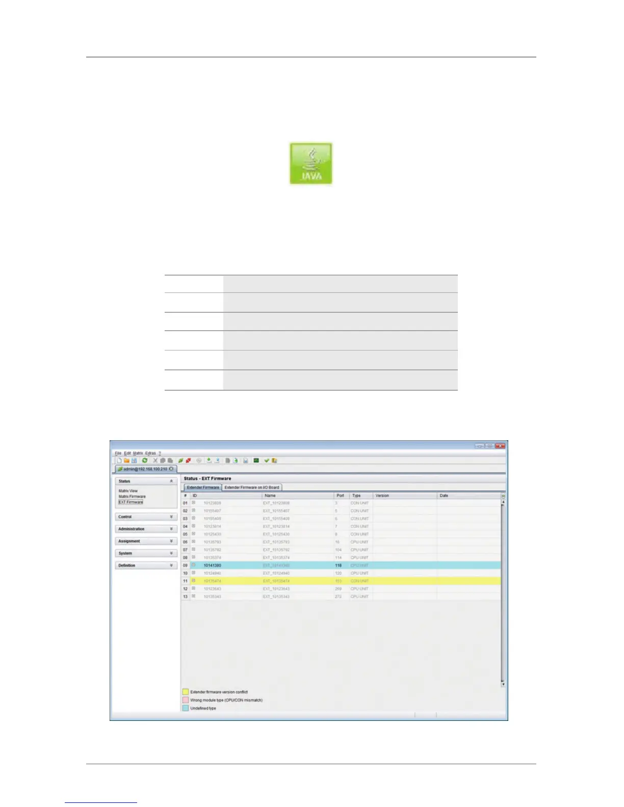 Select “Status >EXT Firmware” in the task area.