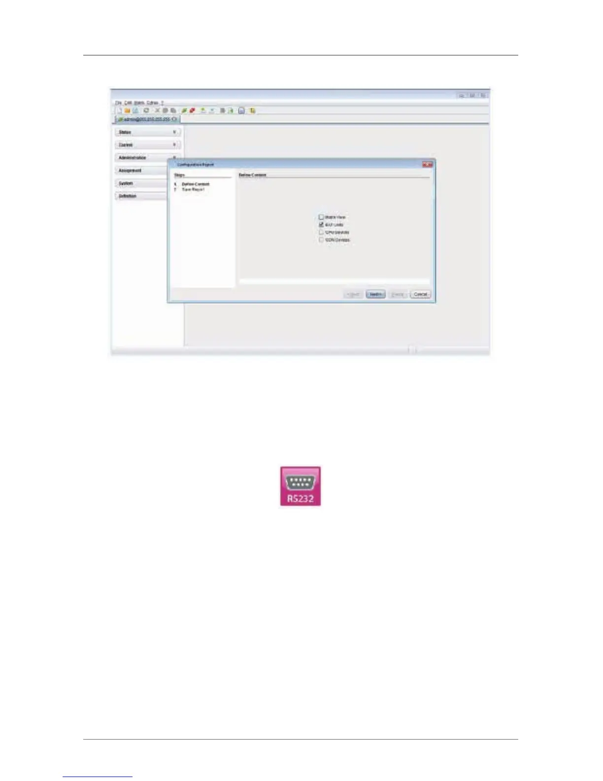 RS-232 (serial) communication. There are telegrams for switching single or all