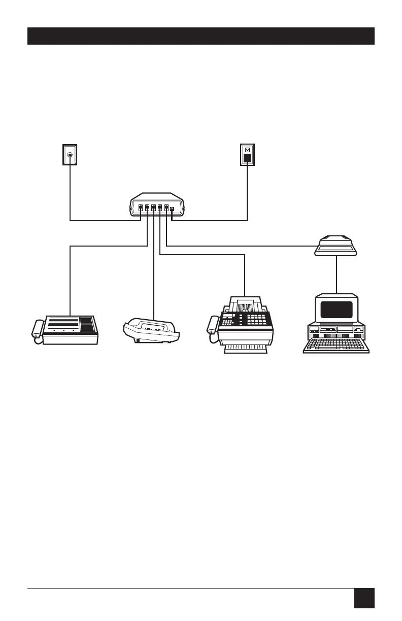 ❶ Connect the incoming telephone line to the leftmost RJ-11 port (labeled