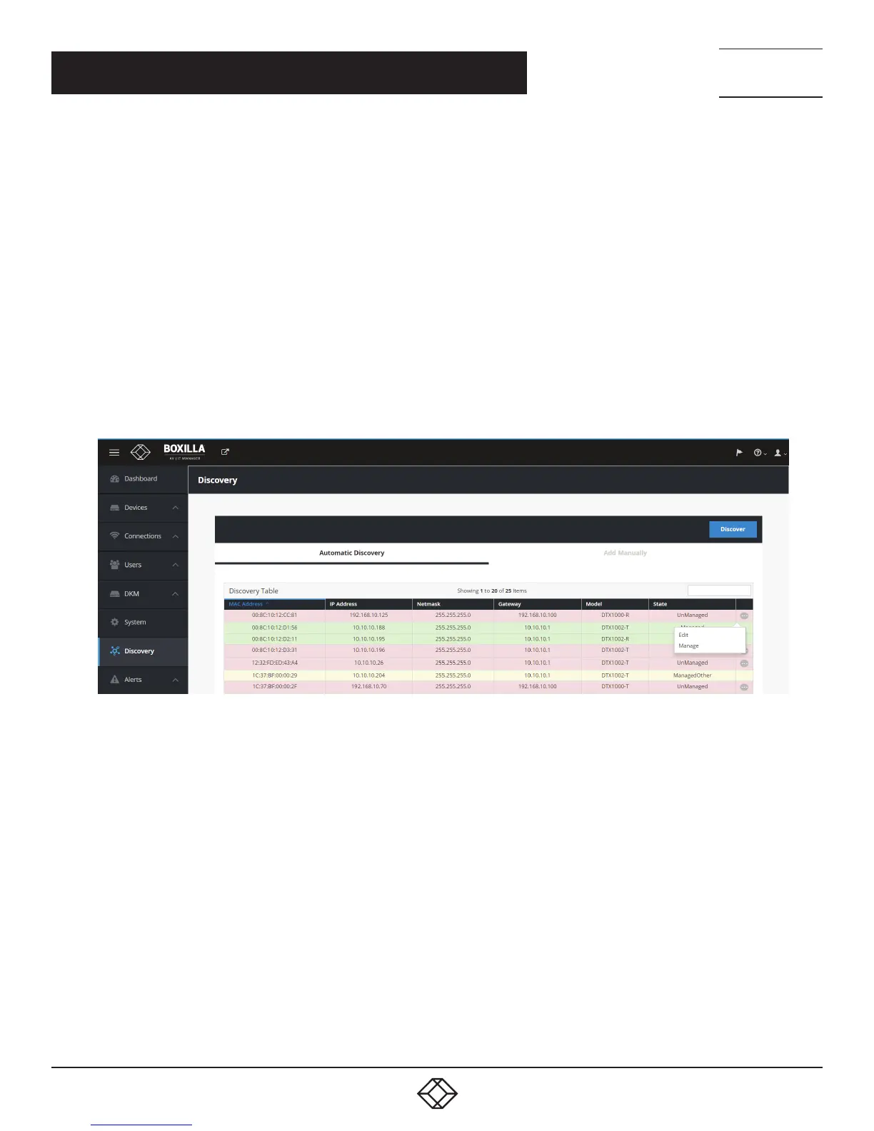 To edit a discovered device, click on the “•••” icon on the row for the device as shown in Figure 18 and select the Edit option.