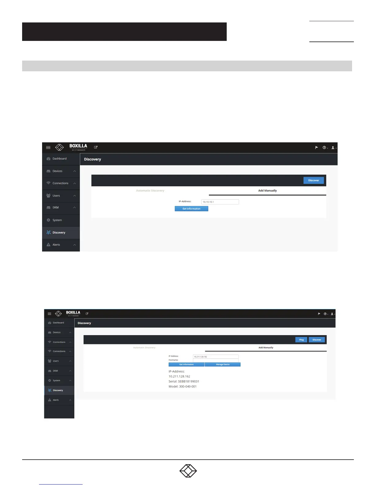 Enter the IP address of the device to be added and click on “Get Information.” This causes Boxilla to retrieve the device’s