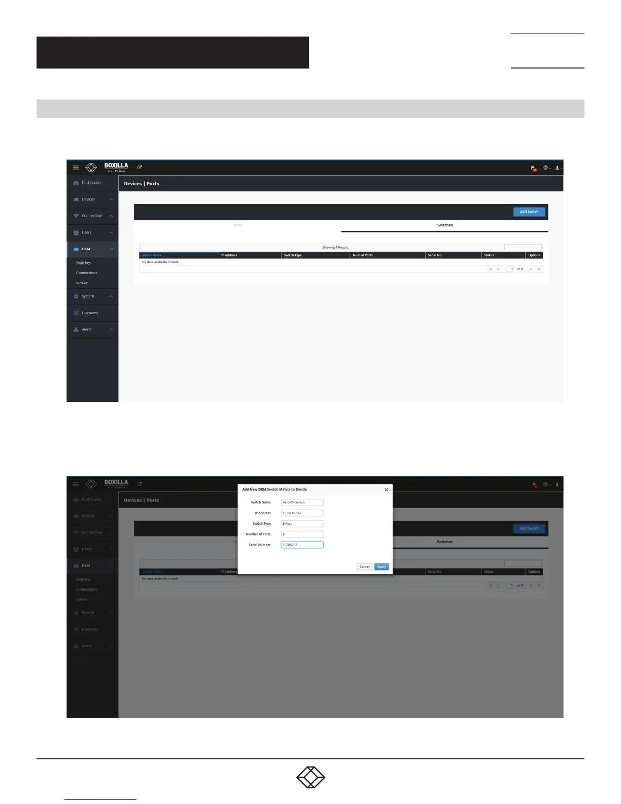Under Boxilla, to add the DKM switch, navigate to DKM —Switches and click the “Add Switch” blue button on the top right