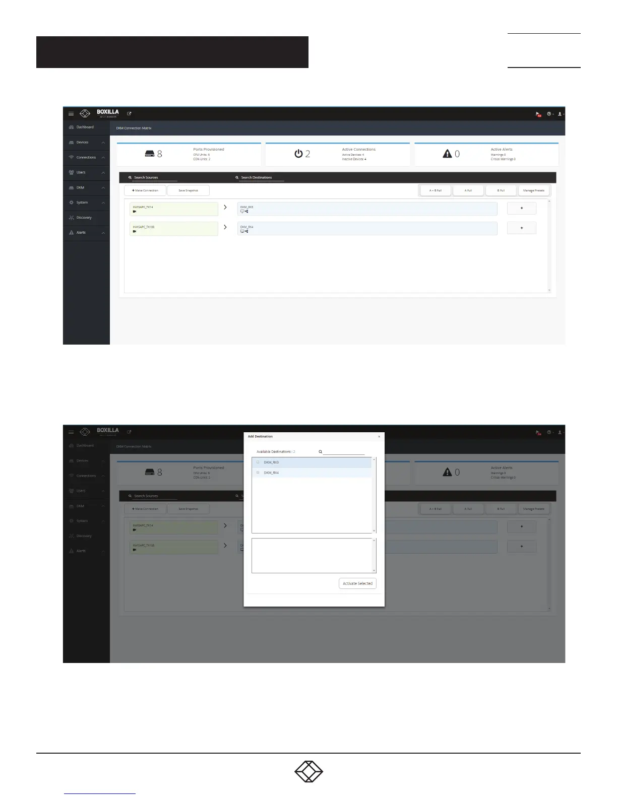 Search of available destinations can be completed within the “Add Destinations” popup box.