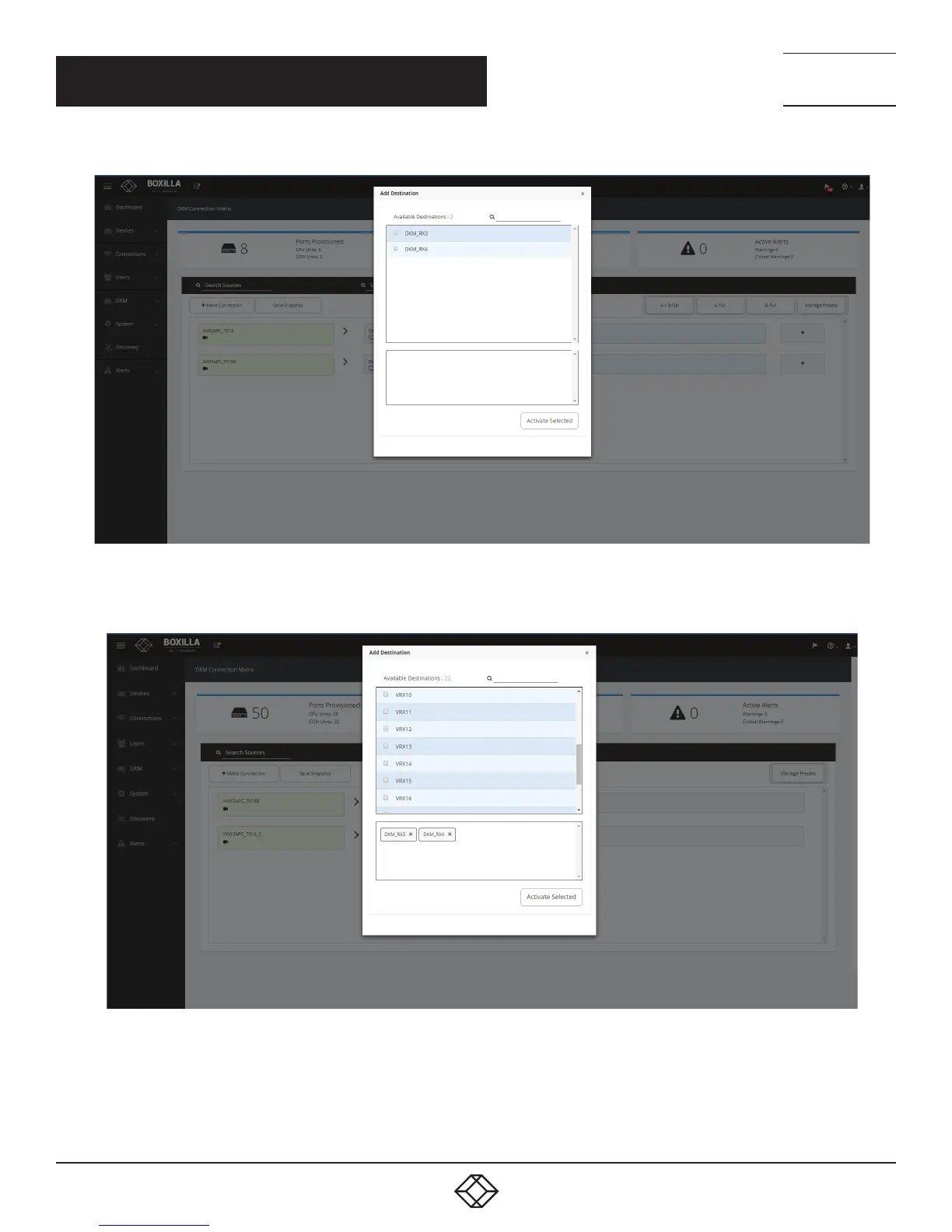 FIGURE 89. ADD DESTINATION POPUP BOX, ACTIVATE SELECTED BUTTON