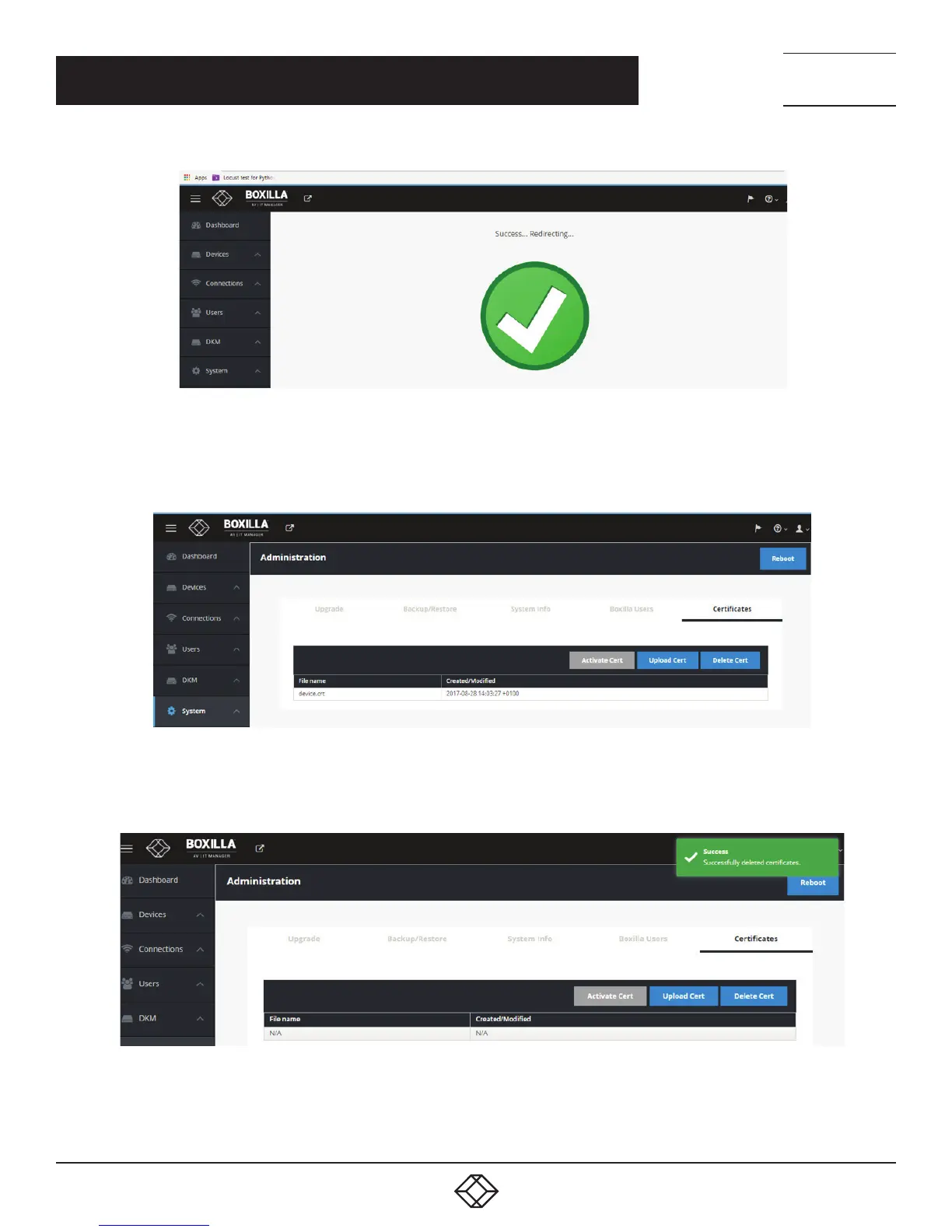 To delete any existing certificates, click on the delete cert button under certificates tab.